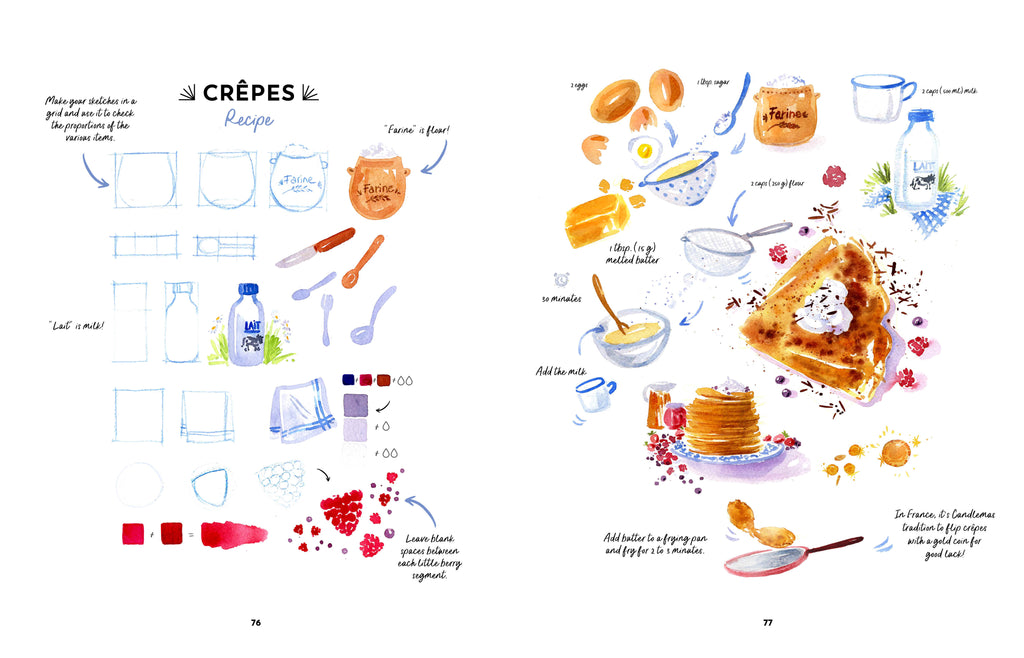 Camille Bellet is a professional illustrator from France who is celebrated for her expertise in culinary illustration. Her work has been featured in books, kits, television, newspapers, and magazines, including collaborations with Vanity Fair, the French news network Ouest France, Michèle Wilson puzzles, and the popular show Le Meilleur Pâtissier, where her recipe illustrations have delighted audiences. Camille’s distinctive watercolor style and attention to detail have made her a sought-after artist in the illustration world. In addition to her professional projects, Camille is a passionate educator, regularly teaching in-person watercolor classes and workshops for both beginners and advanced students across France. Follow her artistic journey on Instagram @camillebelletillustration and learn more on her website, www.camillebelletillustration.com.